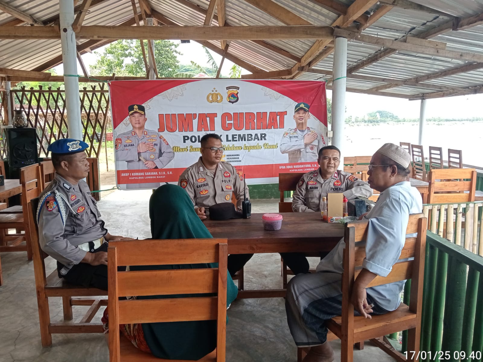 Kegiatan Jumat Curhat dibuka oleh Ps. Kanit Samapta Polsek Lembar, Aiptu Mohammad Nasir. Dalam sambutannya, ia menyampaikan maksud dan tujuan kegiatan sebagai wadah silaturahmi antara Polri dan masyarakat.