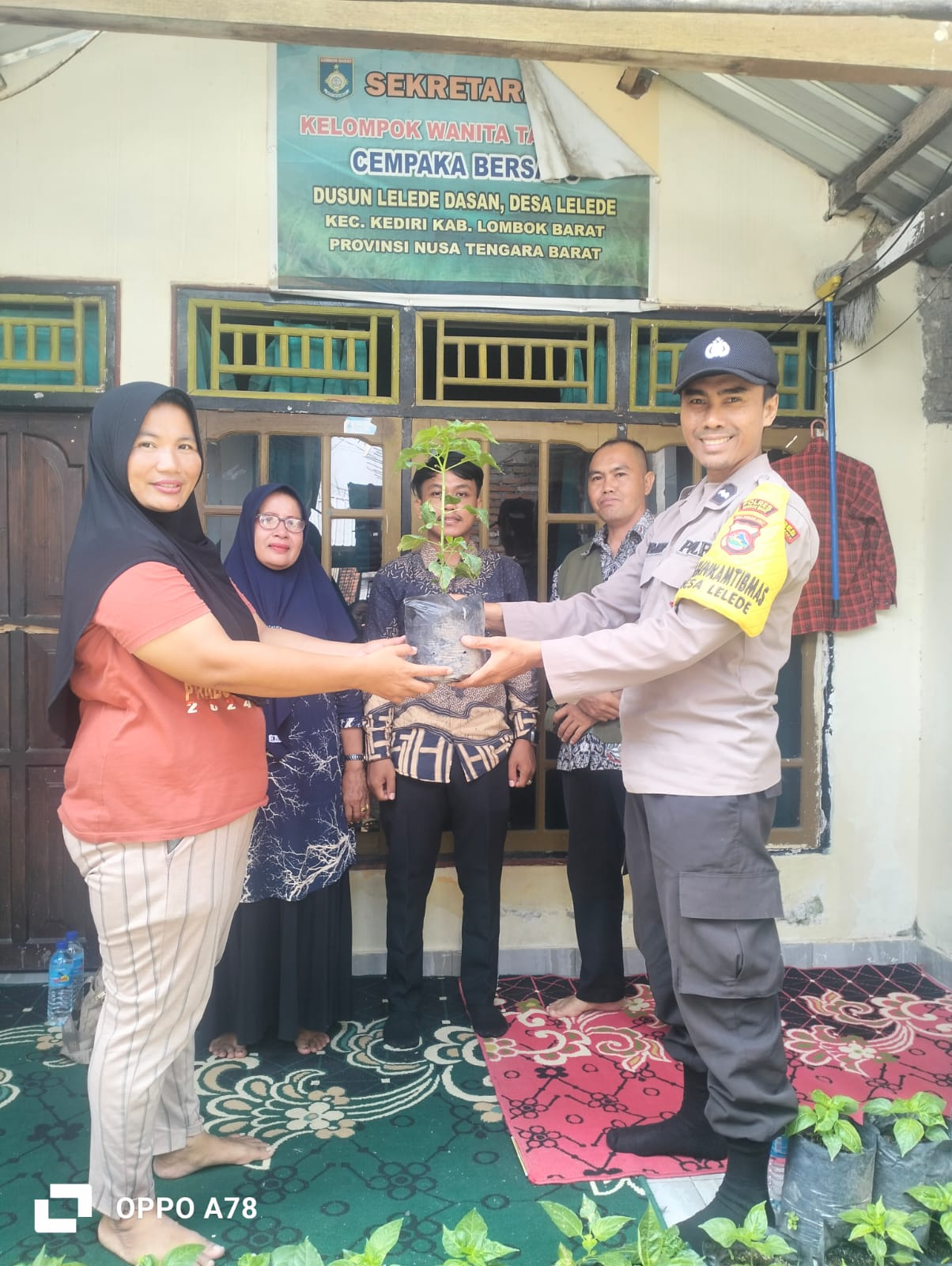 Kediri, Lombok Barat – Bhabinkamtibmas Desa Lelede, AIPDA Lalu Satya Mandayan Kurnia, melaksanakan kegiatan pemberian bantuan tanaman pangan berupa 180 bibit cabai kepada Kelompok Wanita Tani (KWT) Cempaka Bersatu di Dusun Lelede Dasan, Desa Lelede, Kamis (6/2/2025). Kegiatan ini merupakan bagian dari upaya mendukung ketahanan pangan di wilayah tersebut.