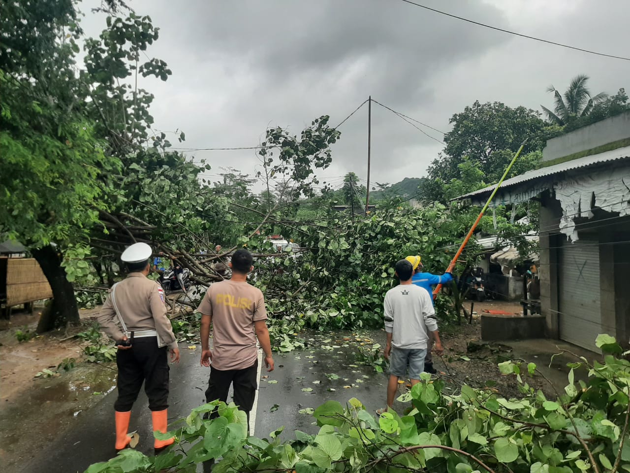“Benar, pagi ini sekitar pukul 06.30 WITA telah terjadi pohon tumbang di Jl. Raya Sekotong – Buwun Mas. Ini akibat cuaca buruk, hujan lebat disertai angin kencang yang melanda wilayah Sekotong sejak semalam,” ujar Iptu I Ketut Suriarta.