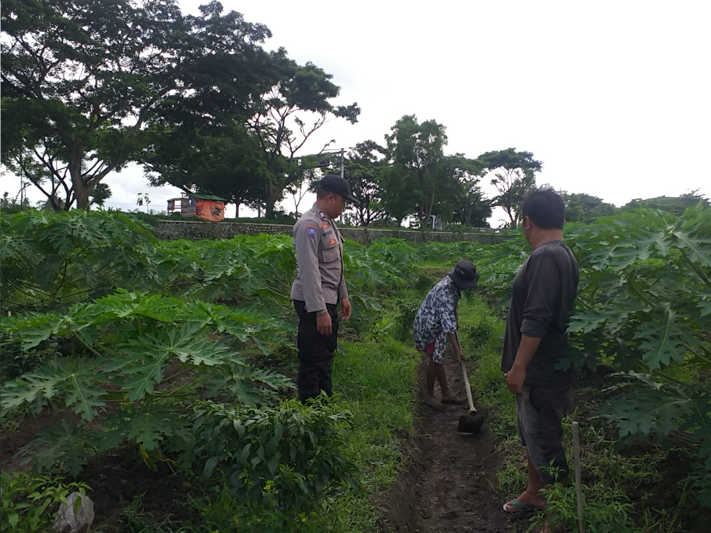 Dalam kunjungan yang menyasar anggota kelompok petani “SARI KARYA”, Bapak I Wayan Suka dan Bapak I Wayan Teja, AIPTU I Gede Dodit menyampaikan sosialisasi mengenai pentingnya ketahanan pangan. Program ini mengajak masyarakat untuk lebih optimal memanfaatkan lahan produktif maupun pekarangan rumah untuk bercocok tanam, beternak, atau bahkan perikanan.