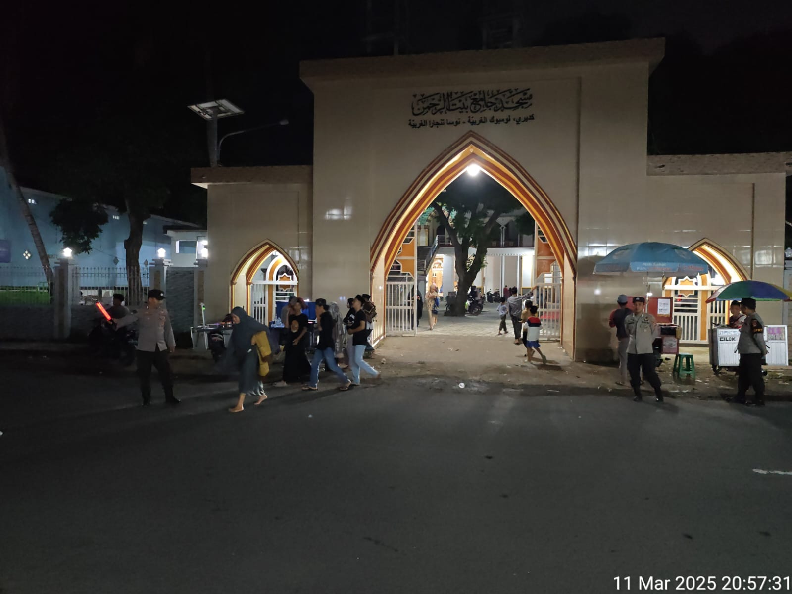 Pada hari Selasa, 11 Maret 2025, personel KASPKT 1 bersama anggota piket jaga SPKT 1 Polsek Kediri melaksanakan pengamanan ibadah sholat Isya yang dilanjutkan dengan sholat Tarawih di Masjid Jamiq Baiturahman Kediri. Kegiatan pengamanan ini dimulai sejak pukul 20.30 Wita hingga selesai, menyesuaikan dengan waktu pelaksanaan ibadah.