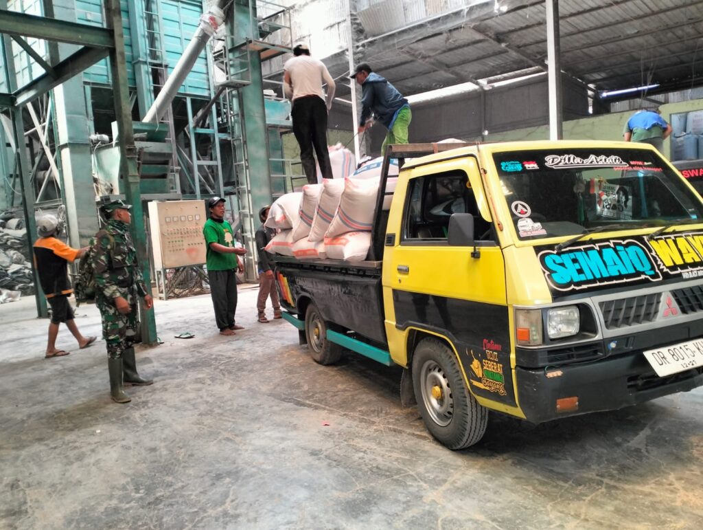Lombok Barat, NTB – Sebagai wujud nyata sinergi dalam menjaga ketahanan pangan dan mendukung kesejahteraan petani, Komando Rayon Militer (Koramil) 1606-06/Sekotong, Bintara Pembina Desa (Babinsa) Desa Buwun Mas, Serka I Gusti Made Ariawan melaksanakan pendampingan penyerapan gabah milik petani di Dusun Blongas, Desa Persiapan Blongas, Kecamatan Sekotong, Kabupaten Lombok Barat.Senin (7/4/25)