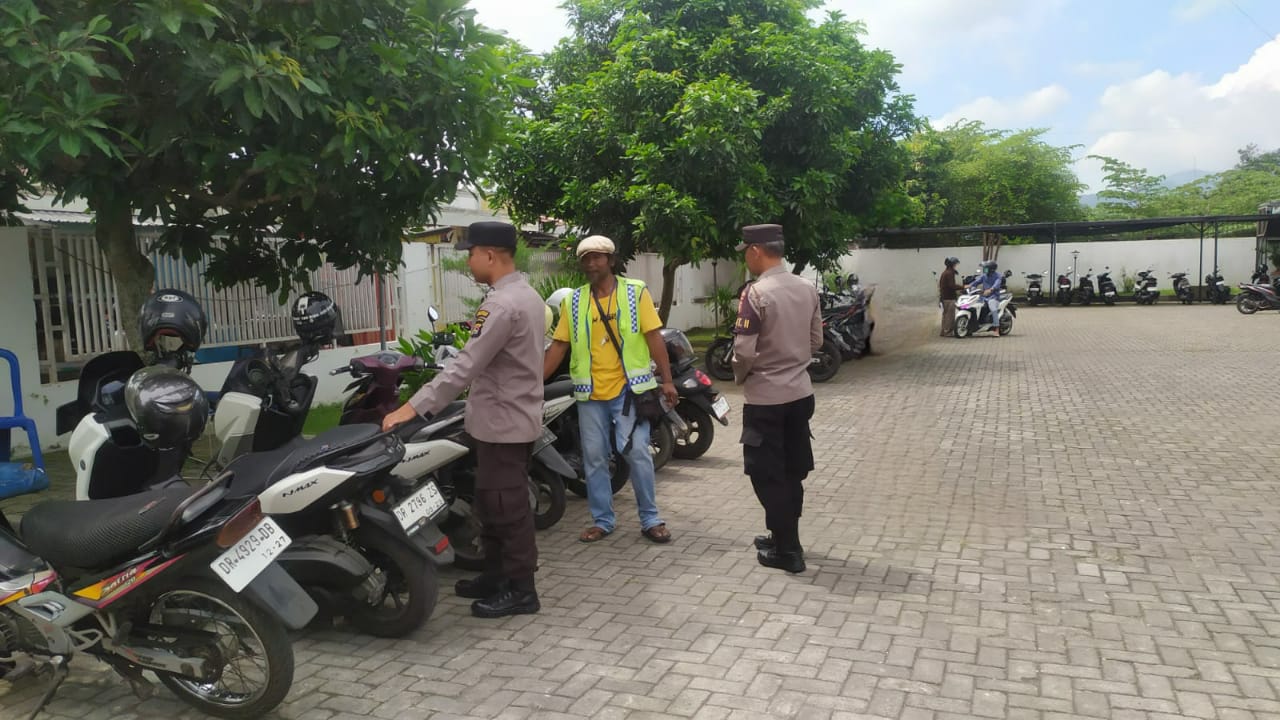 Di sana, selain melakukan pemantauan, personel kepolisian juga berinteraksi dengan petugas keamanan (security) dan pengelola parkiran.