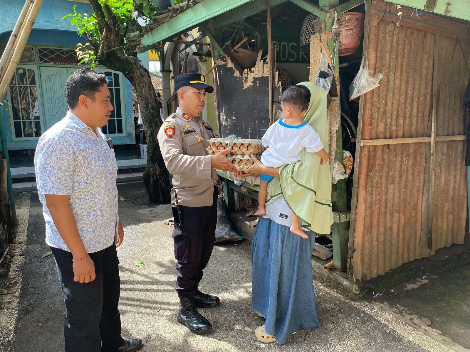 Bantuan telur tersebut diserahkan langsung oleh Kapolsek Kediri beserta jajaran di kediaman keluarga Titin di Dusun Karang Kuripan Baru.