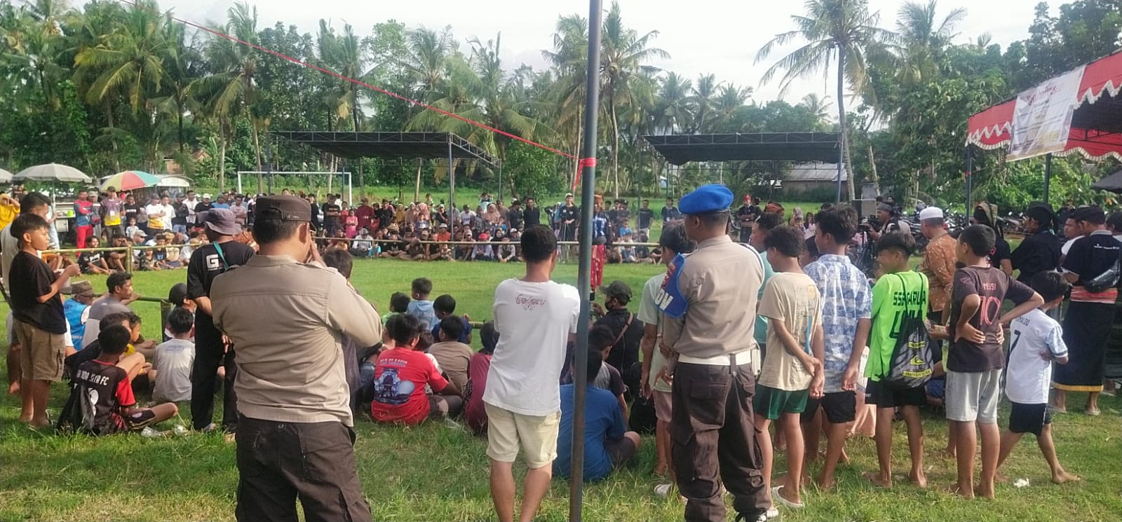 Mereka memastikan setiap sudut area acara terpantau dengan baik, sehingga potensi gangguan keamanan dapat diminimalisir. Kehadiran polisi juga memberikan rasa aman bagi para penonton dan peserta peresean.