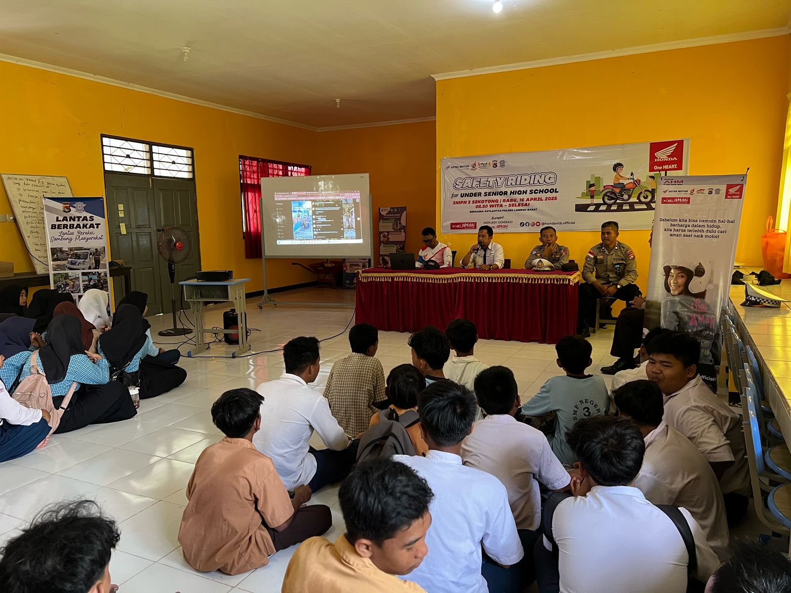 Sekotong, Lombok Barat – Satuan Lalu Lintas Polres Lombok Barat Bersama Kepolisian Sektor (Polsek) Sekotong, menggelar kegiatan Safety Riding yang menyasar siswa-siswi Sekolah Menengah Pertama (SMP) Negeri 3 Sekotong.