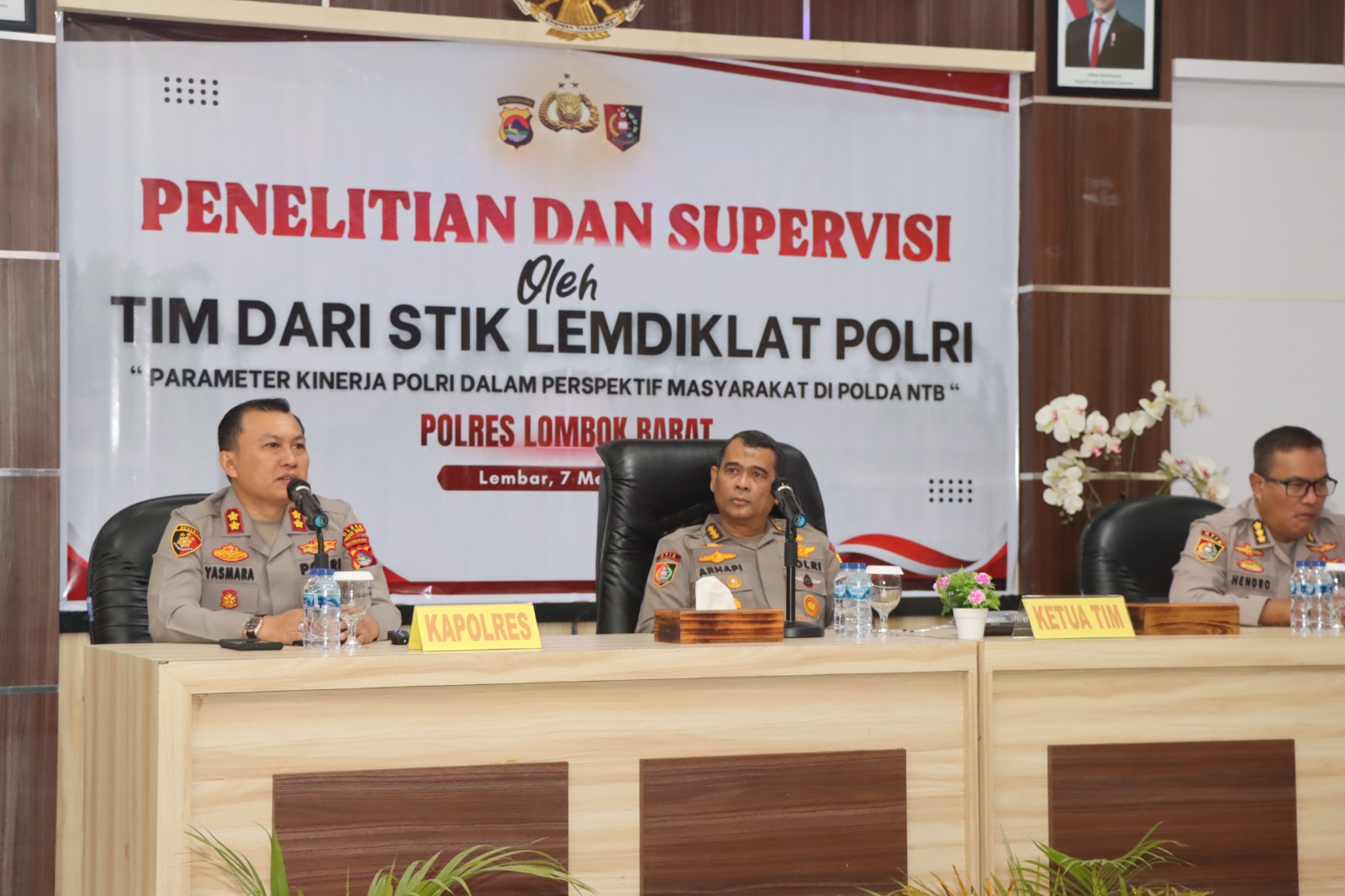 Lombok Barat, NTB – Sekolah Tinggi Ilmu Kepolisian (STIK) Lembaga Pendidikan dan Pelatihan Kepolisian Republik Indonesia (Lemdiklat Polri) menggelar penelitian dan supervisi bertajuk “Parameter Kinerja Polri dalam Perspektif Masyarakat” di Aula Patria Tama Polres Lombok Barat pada Rabu (7/5/2025).