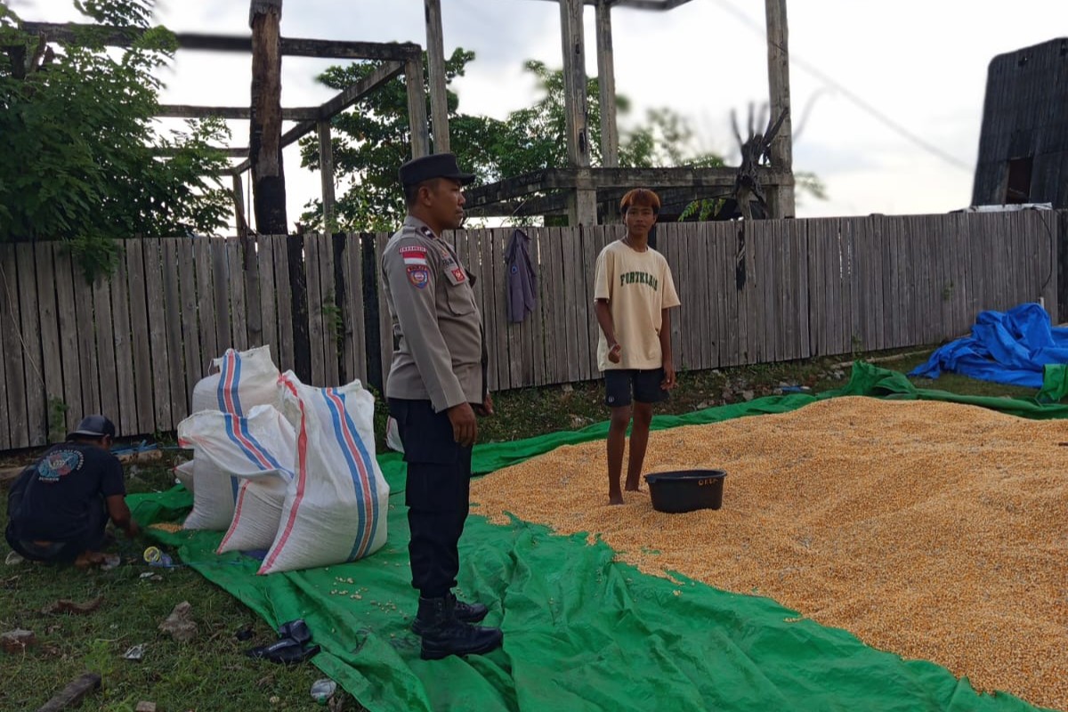 Dalam konteks monitoring pengeringan biji jagung, Bhabinkamtibmas turut memberikan semangat dan dukungan kepada para petani.