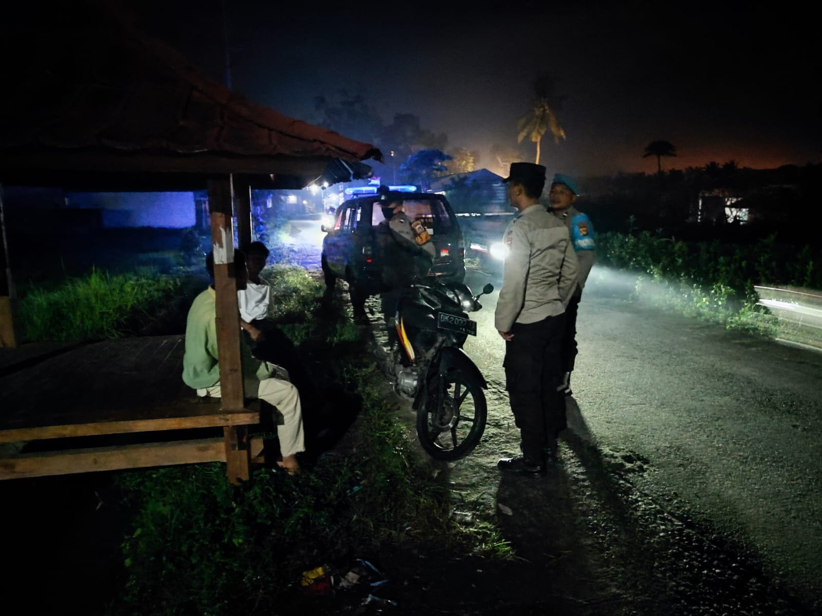 Tim patroli bergerak menuju Dusun Tegal, Desa Jagaraga, di mana mereka melakukan pemantauan keamanan secara seksama terhadap kios-kios pedagang dan permukiman penduduk.