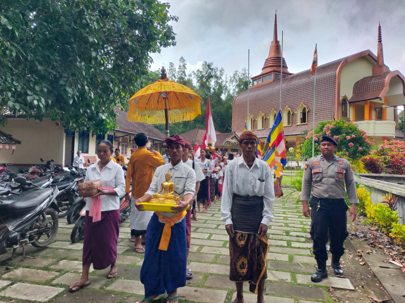 Umat Buddha dengan tertib mengikuti setiap tahapan ritual, sementara personel kepolisian sigap berjaga di setiap sudut lokasi untuk memastikan tidak ada gangguan keamanan.