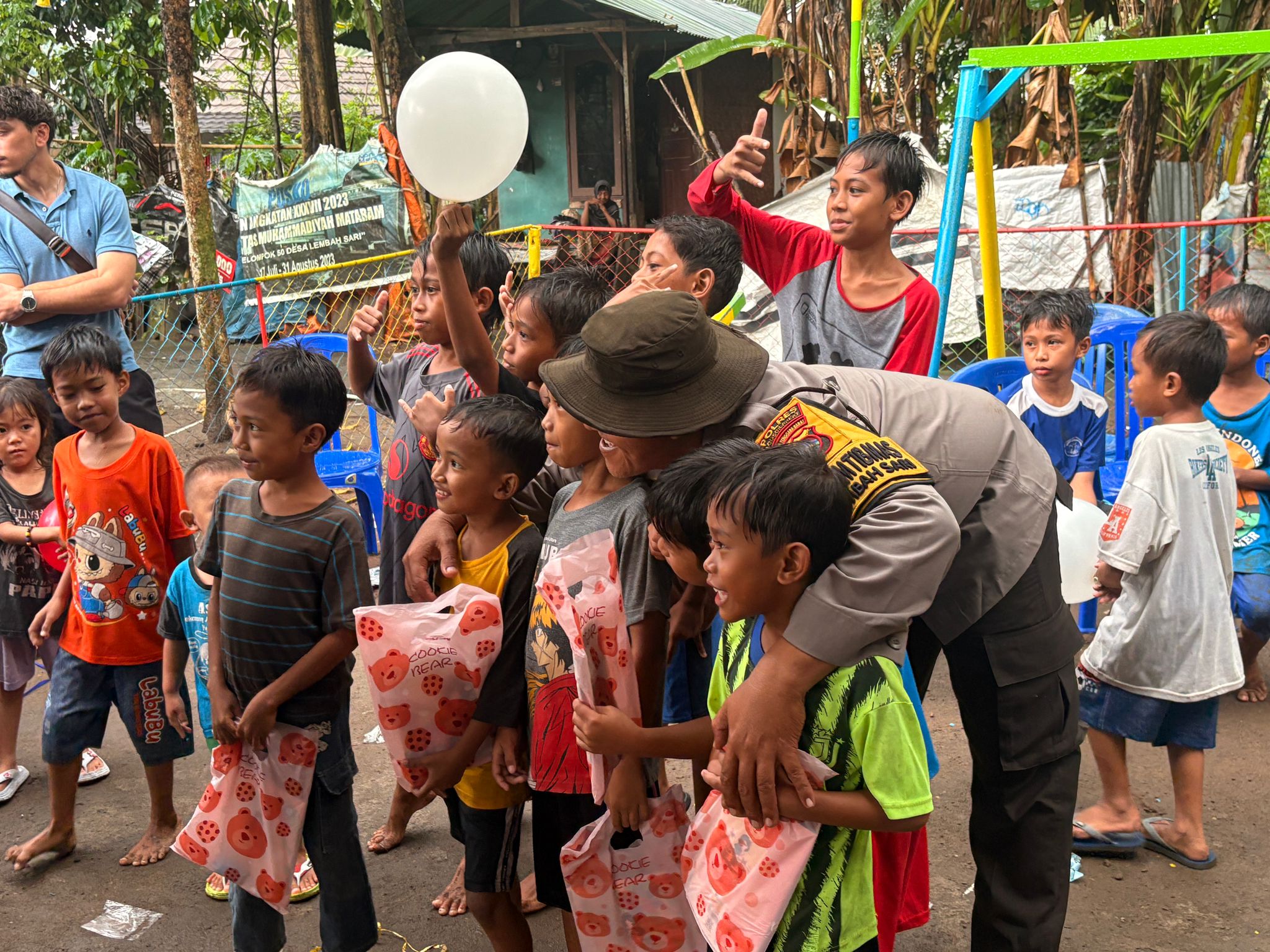 Pasalnya, sebuah taman bermain anak-anak hadir di dusun tersebut, termasuk mahasiswa asal Belanda juga hadir bersama berbagai elemen masyarakat, termasuk aparat kepolisian dan TNI.