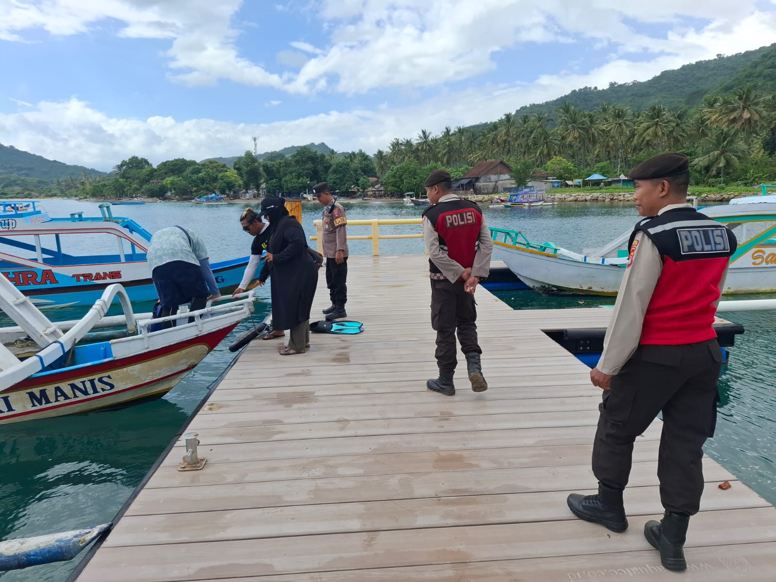 Tim patroli Polsek Sekotong, menyambangi obyek wisata Dermaga Tawun, Desa Sekotong Barat, Kecamatan Sekotong, Kabupaten Lombok Barat, Selasa (10/6/2025).