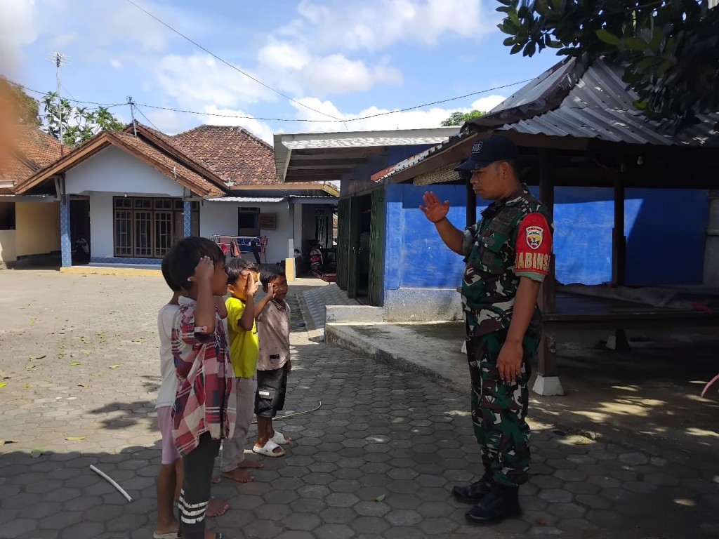 Babinsa Labuan Tereng dari Komando Rayon Militer (Koramil) 1606-04/Gerung, Serka I Nengah Wijaya Antara, terlihat membaur dengan anak-anak yang sedang bermain di lingkungan dusun. Tak hanya sekadar hadir, Babinsa juga aktif berinteraksi dengan penuh kehangatan—membangun komunikasi, menumbuhkan semangat, serta menjadi inspirasi bagi generasi muda.