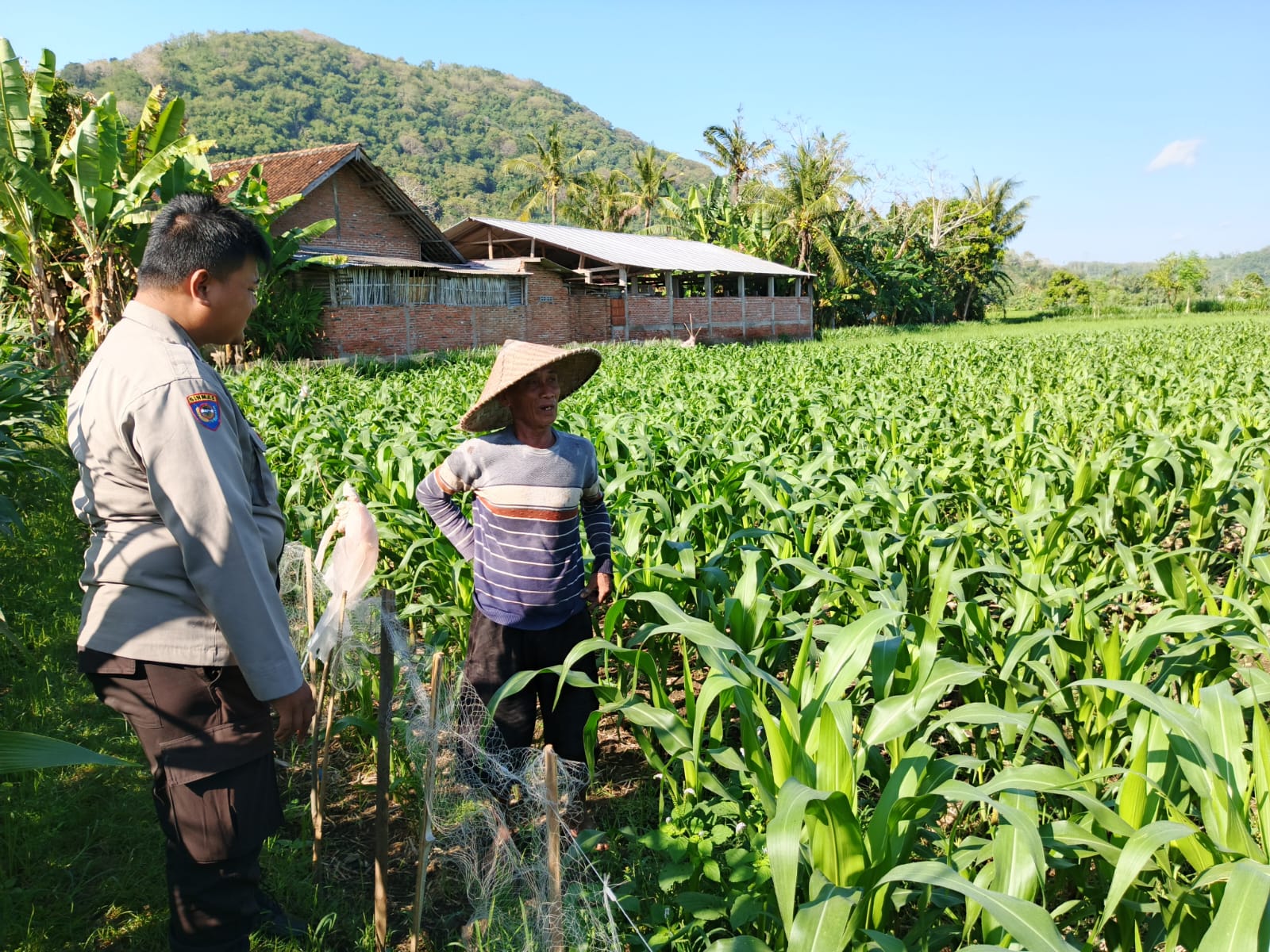 Salah satu petani yang disambangi adalah Bapak H. Muhammad Muhrim. Beliau memiliki lahan jagung seluas 6.000 meter persegi di Dusun Selampang dengan status kepemilikan Sertifikat Hak Milik (SHM). Jagung yang ditanam adalah varietas Bisi-18, yang saat ini baru berusia 14 hari dan diperkirakan akan panen dalam waktu 115 hari ke depan. Interaksi langsung ini menjadi jembatan komunikasi yang efektif antara kepolisian dan masyarakat petani.