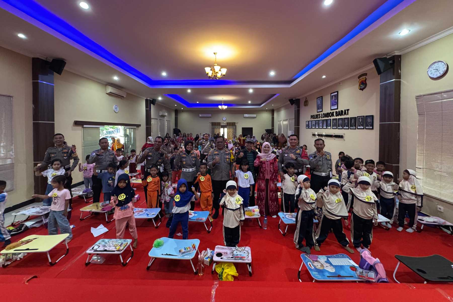 Lombok Barat, NTB – Suasana ceria dan penuh semangat mewarnai Aula Patriatama Polres Lombok Barat pada Jumat, 20 Juni 2025. Ratusan anak-anak dari berbagai Taman Kanak-Kanak (TK) se-Kabupaten Lombok Barat berkumpul untuk mengikuti Lomba Mewarnai yang diselenggarakan dalam rangka memperingati Hari Bhayangkara ke-79.