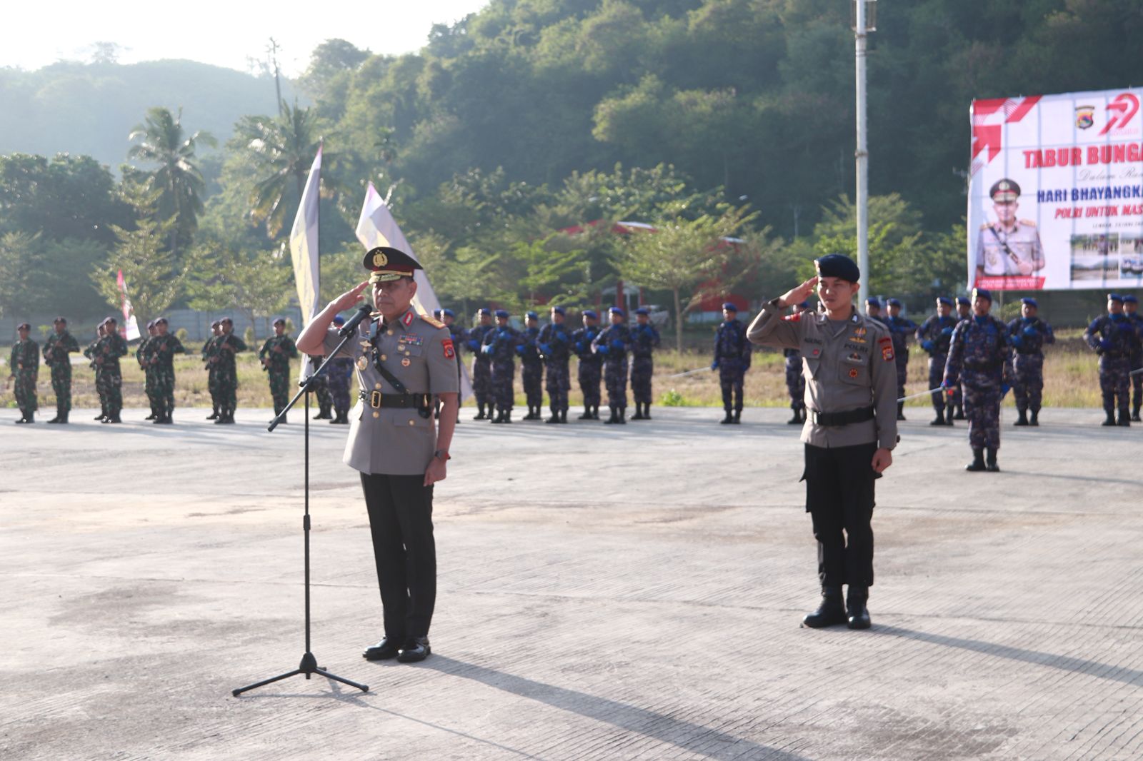 Upacara ini dipimpin langsung oleh Wakapolda NTB, Brigjen Pol Heri Nugroho, sebagai Inspektur Upacara. Kehadiran beliau menegaskan betapa pentingnya acara ini bagi institusi Polri. Tak hanya itu, sejumlah Pejabat Utama (PJU) Polda NTB turut hadir, termasuk Kapolres Lombok Barat AKBP Yasmara Harahap, S.I.K. dan Kasat Polairud Polres Lombok Barat IPTU Lalu Nursidi.