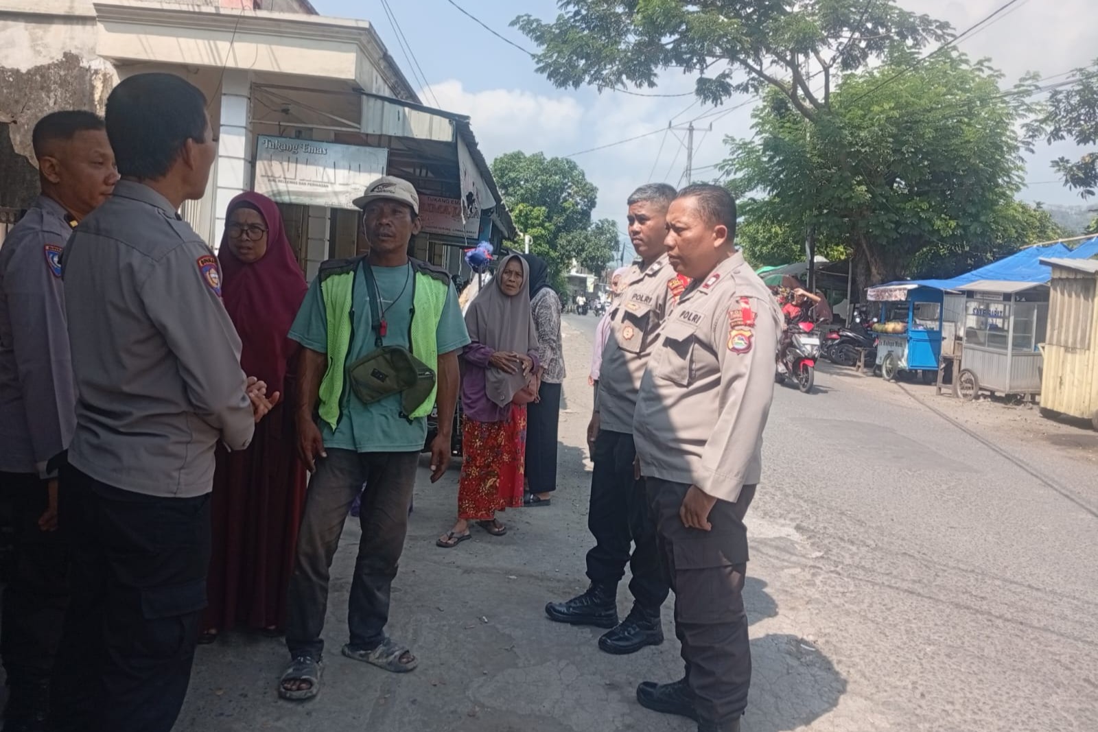 Kehadiran polisi di tengah masyarakat sangat penting untuk memberikan rasa aman. Dalam patroli ini, interaksi langsung dilakukan dengan berbagai elemen masyarakat. Salah satunya adalah Bapak Fendi, seorang juru parkir yang sehari-hari beraktivitas di area tersebut, serta para pemilik pertokoan di sekitar Simpang Empat Rumak.