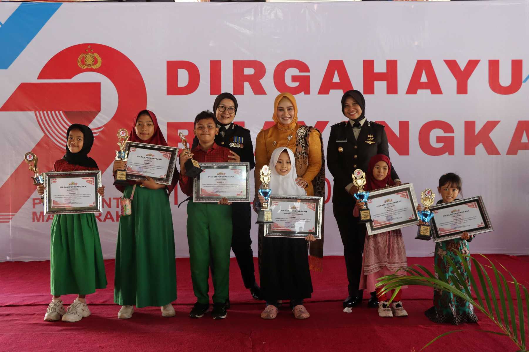 Kemeriahan acara juga terasa saat pembacaan dan penyerahan hadiah bagi para pemenang lomba-lomba yang diselenggarakan dalam rangka memeriahkan Hari Bhayangkara ke-79.