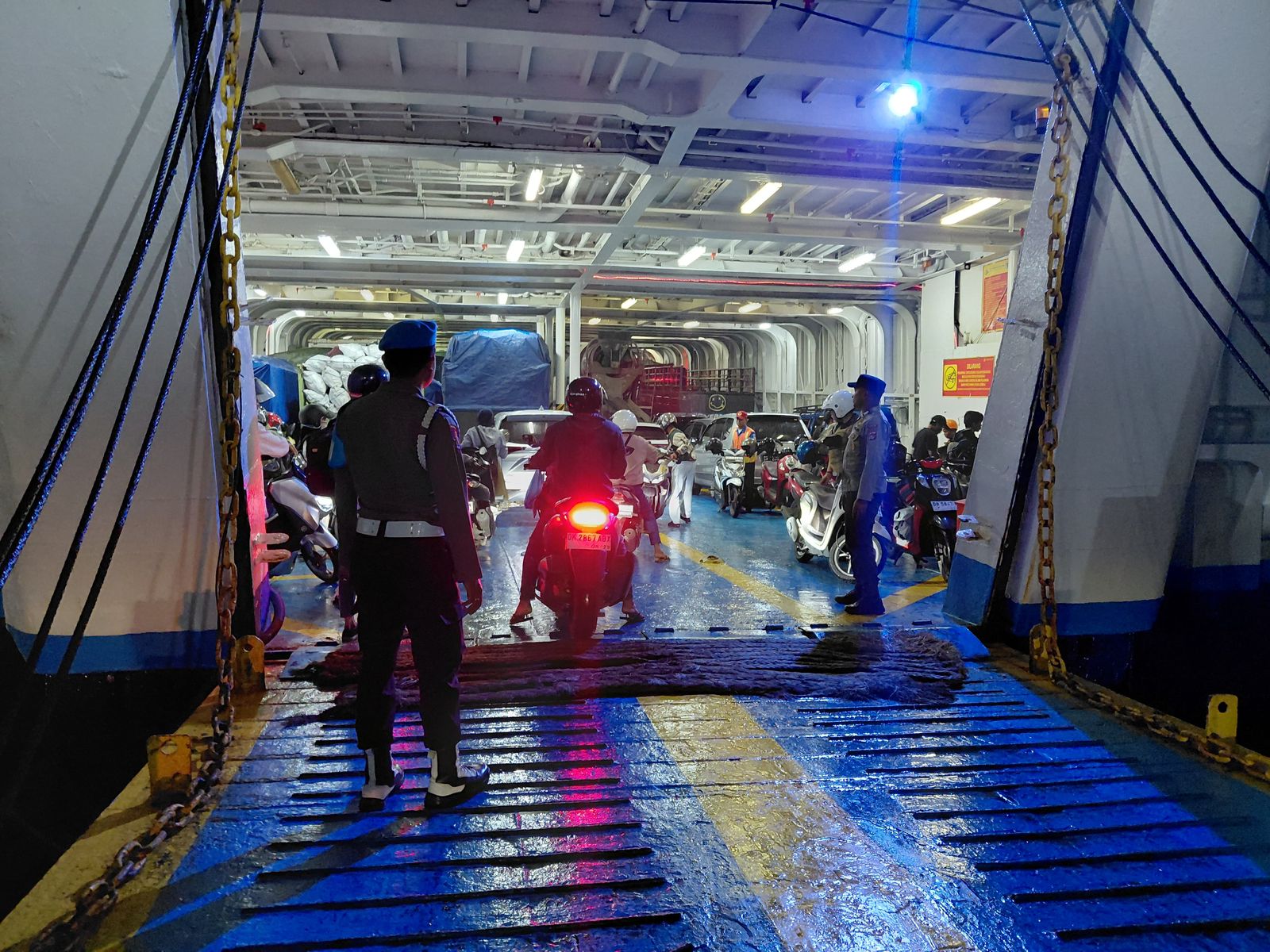 Pada hari Sabtu, 05 Juli 2025, sekitar pukul 21.30 WITA, personel Polsek Kawasan Pelabuhan Lembar terlihat aktif melaksanakan pengamanan pemuatan kapal di Dermaga Pelabuhan Lembar. Kegiatan ini difokuskan pada pengawasan dan pelayanan terhadap KMP. DHARMA FERRY VIII yang dijadwalkan berlayar dengan rute Lembar – Padang Bai, Bali.