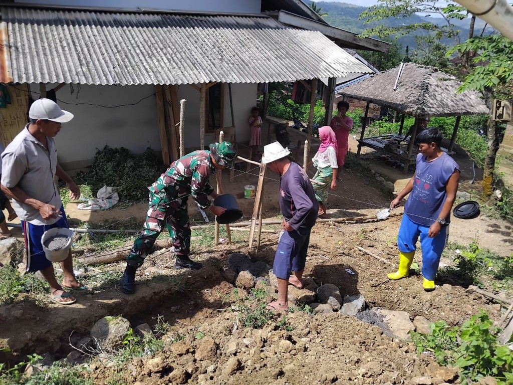 “Kami turun langsung membantu proses penggalian, pengadukan semen hingga pemasangan batu pondasi. Ini bentuk nyata dukungan TNI terhadap kebutuhan masyarakat,” ujar Babinsa Labuan Tereng, Serka I Nengah Wijaya Antara.