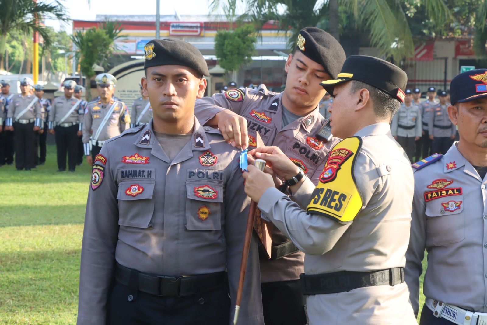 Kapolres Lombok Barat, AKBP Yasmara Harahap, S.I.K., memimpin langsung pelaksanaan Apel Gelar Pasukan Operasi Patuh Rinjani 2025 ini.