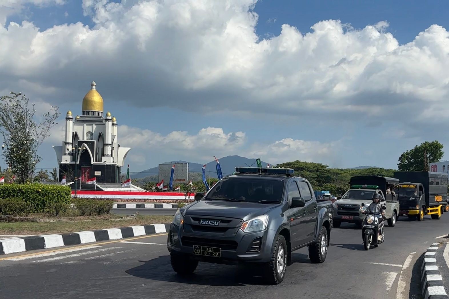 Menyusuri jalur By Pass Bandara Internasional Lombok (BIL) I, dan kembali melalui bundaran GMS sebelum mengakhiri kegiatan di kantor Bupati/kantor DPRD.