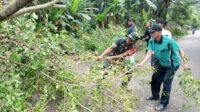 Pohon Tumbang Tutup Jalan, Babinsa Gerak Cepat Bersihkan Lokasi