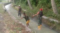 Babinsa Lembah Sari Gotong Royong Bersihkan Irigasi Desa